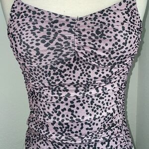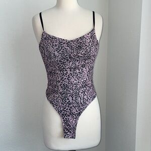 TOPSHOP animal print purple black snap scrunch bodysuit strap tank top US size 6