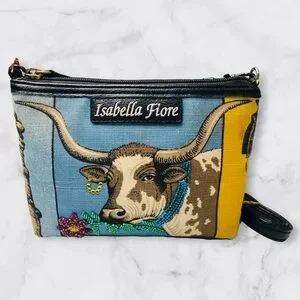 Isabella Fiore Vintage Texas Longhorn Embroidered Embellished Designer Purse Bag