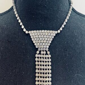 Glam 80’s Rhinestone Necktie Necklace Vintage in “Very Good” Condition. All Rhinestones in tact🌸🌸🌸🌸