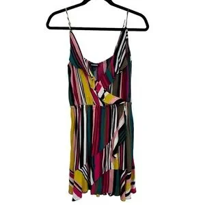 NWT!! Express Colorful striped ruffle dress w/ adjustable straps