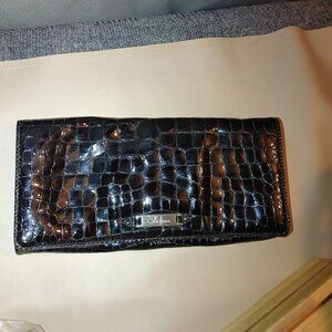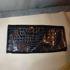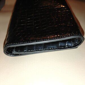Cole Haan Black Patent Leather Crocodile Clutch Bag Purse Wallet