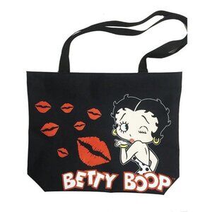 New Black Betty Boop Kisses Lips Tote Zipper Bag Large Shoulder Shopping Gift