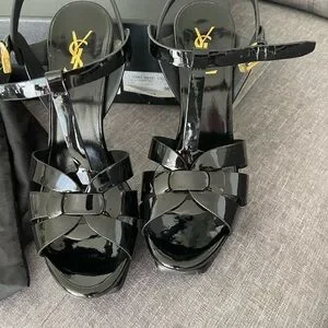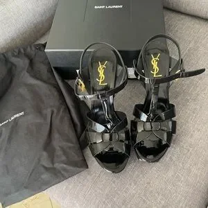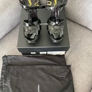 Saint Laurent Tribute Patent Platform Sandals YSL Heels leather size 8 ysl shoes