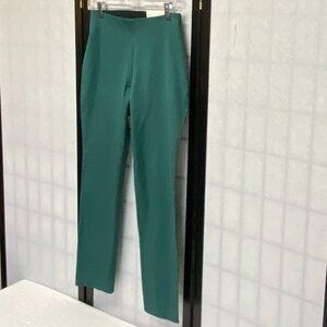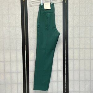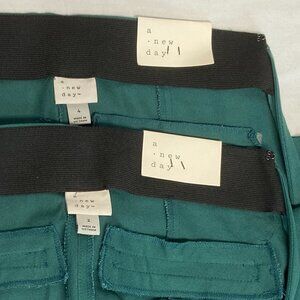 High-Rise Skinny Ankle Trousers from A New Day. New with tags. Midweight stretchy fabric with high-rise silhouette in solid teal green. Pants feature fitted hip and thigh that tapers to ankle. No waistband. Seam runs down center back. Faux pocket welts on back. Zips on side with hook and eye closure. Great for office wear, dinner dates, or elevated casual looks. Pair with a crisp blouse, blazer, or chunky sweater for year-round versatility.