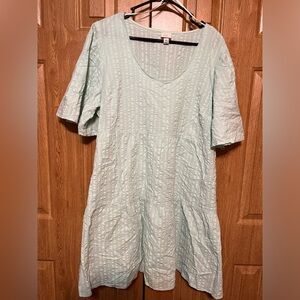 A new day Mint Seersucker Short Sleeve Scoop Neck Tiered Babydoll Dress with Pockets. Scoop neck. Short sleeves. Tiered dress.