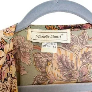Michelle Stuart Vintage Long Sleeve Floral Button Mock Neck Ruffle Dress Boho