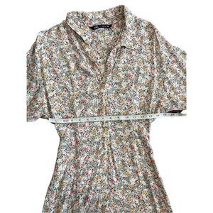 Zara Ditsy Floral Cottagecore Maxi collar Shirt Dress sz XS neutral minimalist