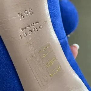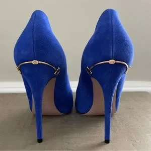 Take every step with elegance and style in these gorgeous pumps from the House of Gucci. They are crafted meticulously using blue suede. They showcase pointed toes, slender heels, and a slip-on feature. These beautiful Gucci pumps will be your favorite pair in no time!
