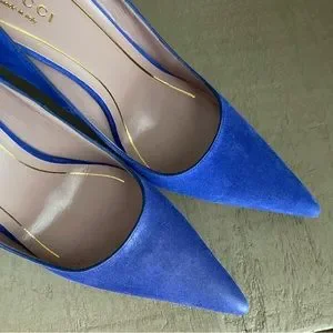 Gucci Blue Suede Pointed Toe Pumps Size 38.5