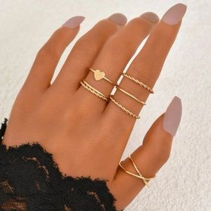Gold plated heart / criss cross / twist / solid band stacking fashion ring set