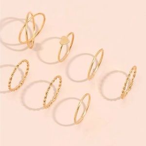 🎉 New Golden Heart & Twist Rope Rings Set of 8