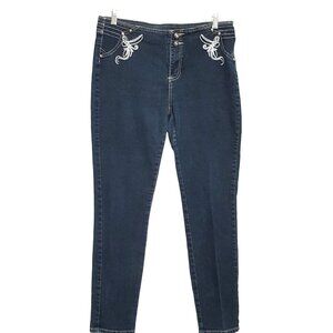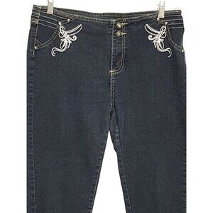 Miss Pirate Skinny Denim Jeans Women's 15 Blue Low Rise Dark Wash Embellished 34