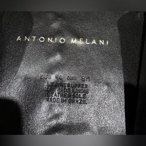 Women’s ANTONIO MELANI Black Leather Platform Boots, 3 1/2” heels, in excellent condition. Wear with your jeans tucked in or with a dress or skirt.