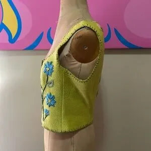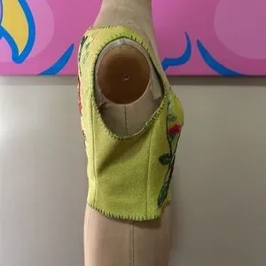 Moschino Green Jute Embroidered Flower Vest Bustier