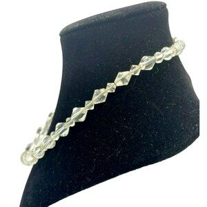 Vintage Faceted Crystal Art Deco Sterling Silver Graduated Bead Necklace 16"