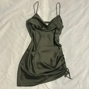 Topshop Cowl Neck Green Satin Asymmetrical Mini Dress