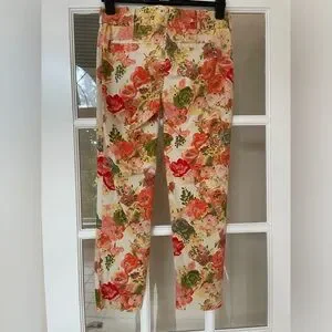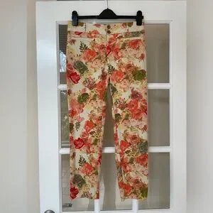 Stunning floral crop “Charlie” pants by Cartonnier in vibrant shades of coral, red, yellow, green and cream. Beautiful quality material, as expected of Cartonnier, in 96% cotton and 4% spandex. US size 4 - please see photos for measurements.