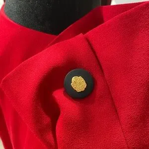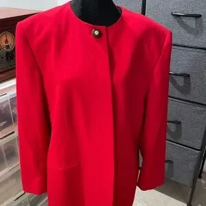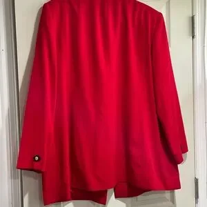 Worn once- Red blazer (black/gold & Red buttons) lined 56% triacetate 44% polyester. Size 18W black mark on bottom back (see picture)