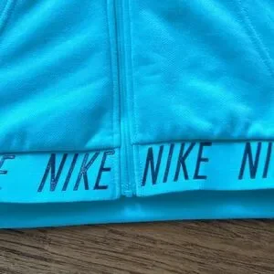 Teal short sleeve Nike sweatshirt with hood. Front pockets.