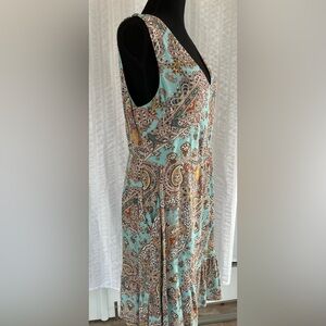 Cynthia Rowley size 10 -Boho Paisley Dress - fully lined - Teal/Beige/Pink