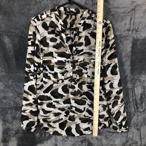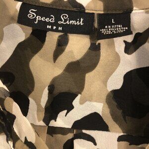 Speed Limit Black Brown Camouflage Blouse Sliver Stud Buttons Size Large