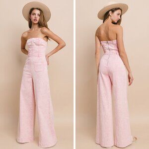 ROSE PINK STRAPLESS MINERAL WASH WIDE LEG DENIM JUMPSUIT π€