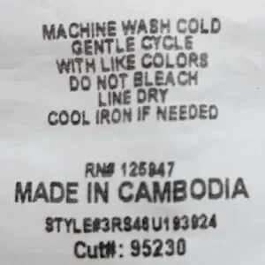 Care Instructions: Machine Wash cold- Line Dry- Can tumble dry low