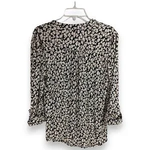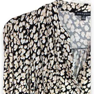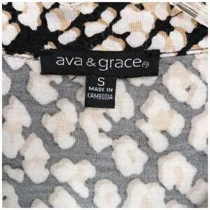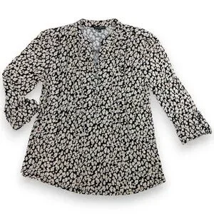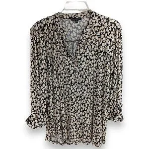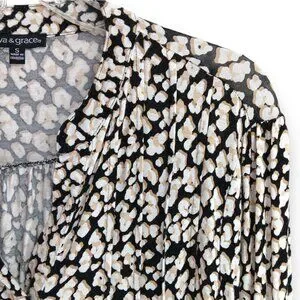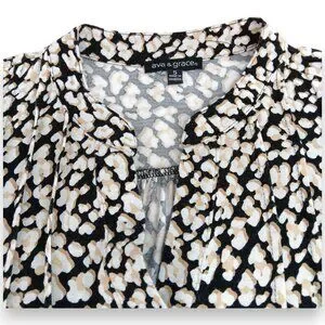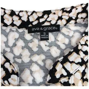 AVA & GRACE-Women's Pleated 3/4 Sleeve-SMALL-Floral-Black with White-Tan Flowers