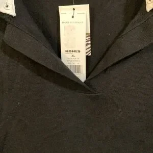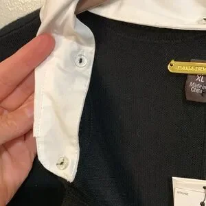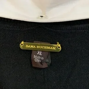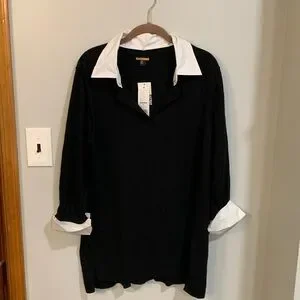 Dana Buchman 3/4 sleeve, v-neck, black sweater with removable collar and sleeve cuffs. Exposed seam detailing. NWT. Size XL