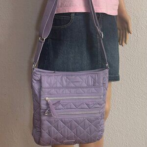 This is a gorgeous Vera Bradley Triple Zip Hipster in the color Lavender Sky and this is made from performance twill, which is water resistant. This purse is preowned and is from a smoke free home. The purse is in excellent condition and the color is even prettier in person than in the photos.