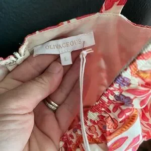 Oliviaceous size large, pretty orange pink and yellow design. Tie straps and corset rib cage!