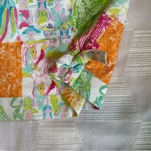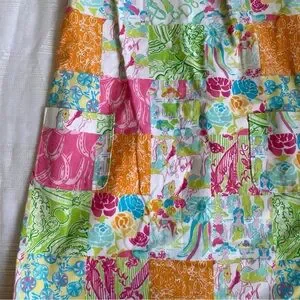 Lilly dress with horse patchwork print. Patch style pockets, side slits with tie bows, and back zipper. Bright colors and fun print! Great pre-loved condition, size 8. Please review images, as this is a pre-owned item.