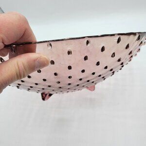 Vintage Footed Light Cranberry Centerpiece Bowl Hobnail Boho Fall Cape Cod