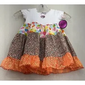 Rainbow baby Dress Mix Print Ruffle Casual Short Sleeve toddler size 2T