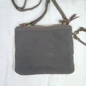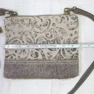 Elevate your fashion game with this stylish Myra Handbags crossbody bag. This small bag, with a style number of S-1150, is perfect for a day out or a night on the town. The exterior is made of high-quality animal hair in a beautiful gray color, and features a unique two-tone design that adds a touch of sophistication to any outfit. The strap accents add a touch of elegance, making this bag a must-have for any fashion-forward woman. Whether you're running errands or hitting up a party, this Myra Handbags bag is the perfect accessory to complete your look.