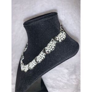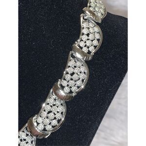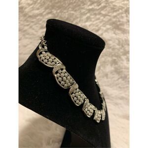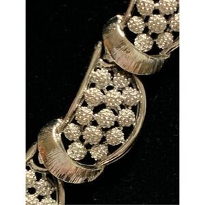 Estate silver choker necklace adjustable chain back. Longest link 17”. Popcorn baby’s breath floral fan hinge links. Great vintage condition. Signed Coro.