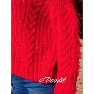 DAY & MOON Red knit fringe sleeve cardigan S M L