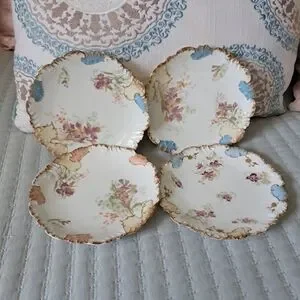 Antique 1880s Limoges French Porcelain Dessert Set of 4 Plates in Floral Motif