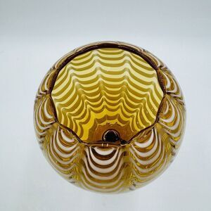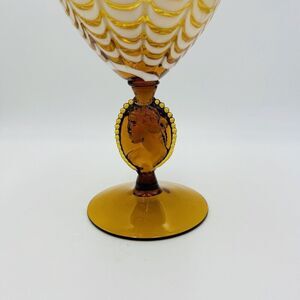 MCM Italy LAVORAZIONE EMPOLI Draped Amber cameo Art Glass Vase Compote Lidded