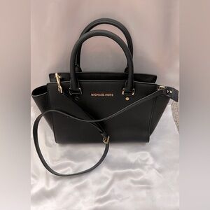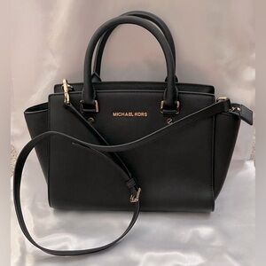 Can be worn as a crossbody, on the shoulder, or by the handles.