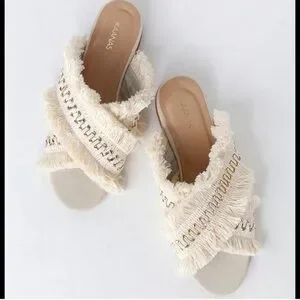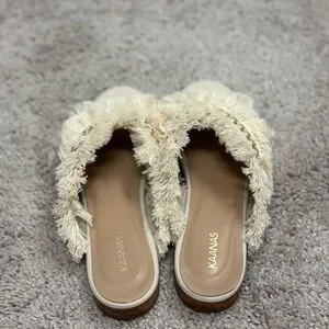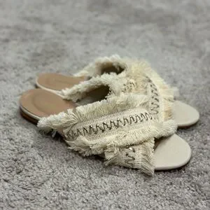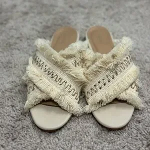 Kaanas Ibiza size 8 Frayed slip ons Made in Columbia Cream with silver accents Excellent condition