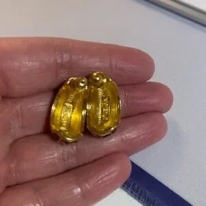 Napier Designer Vintage 1" Stud back Shiny Black Enamel Gold Filled Earrings