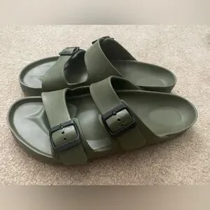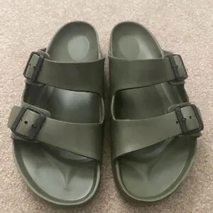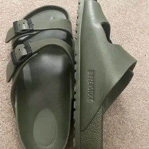 Birkenstock EVA sandals in an olive green colorway.