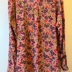 Beautiful Butterfly design by Coral Bay button down tab and button hold up the sleeve or let them down size xl pit to pit 27”
