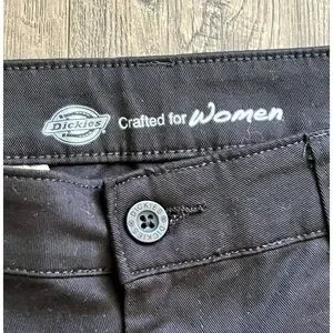Dickies' Women's Slim Fit Skinny Leg Pants are all-purpose pants ready for any casual, social or work situation. Made with just enough stretch to help you move about the day, it has a contour waistband with stretch interlining so that back gap is undetectable. Back welt pockets give you the perfect amount of utility for someone on the go.
