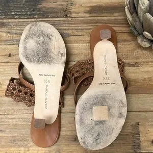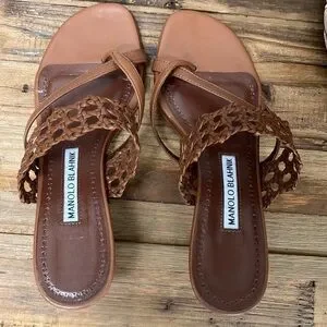 Gorgeous Manila Blahnik sandals with 2” kitten heel. Saddle brown leather. In excellent++ condition.