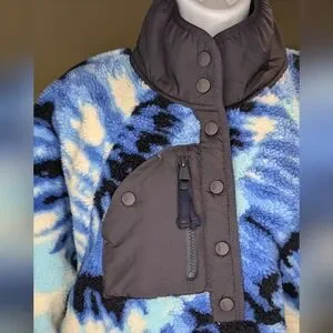 NWT Free People Movement Rocky Ridge Pullover Tie Dye Blue Sherpa