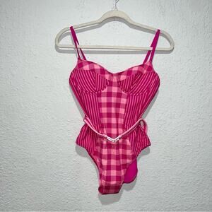 Solid & Striped Spencer Orchid Pink Gingham Belted One-Piece Swimsuit