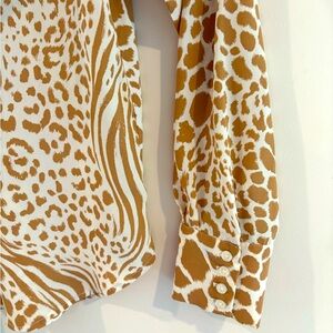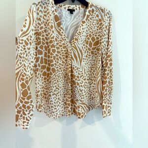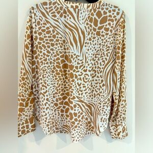 Ann Taylor Brown Cream Animal Print Long Sleeve Women’s Blouse Top S