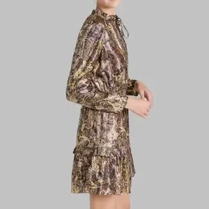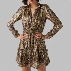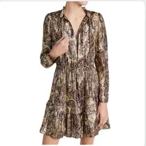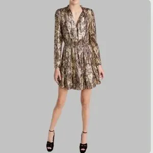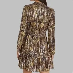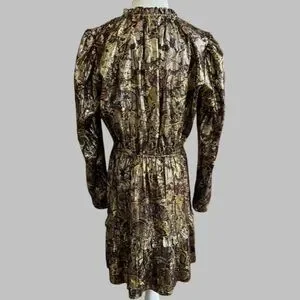 NWT BA&SH Capi Lady Metallic Lame Paisley Ruffle Puff Long Sleeve Dress Size M